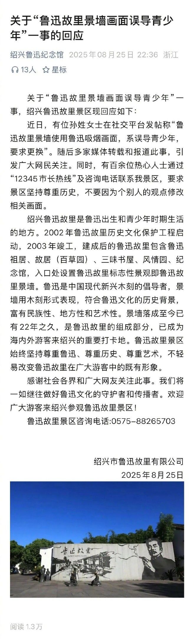 1.争议点就在一部分网友认为应该保留这个鲁迅先生的人物标志,尊重历史。但另一部分网友认为去掉“室内背景”的墙画会引导室外吸烟。